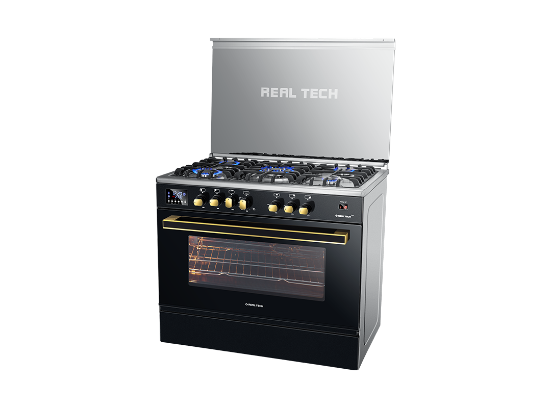 بوتاجاز برو أسود سينسور 5 شعلة من ريال تك شاشه تاتش, كاست , امان كامل , سينسور قارئ لحرارة الفرن , الفرن والشواية يعملان معا