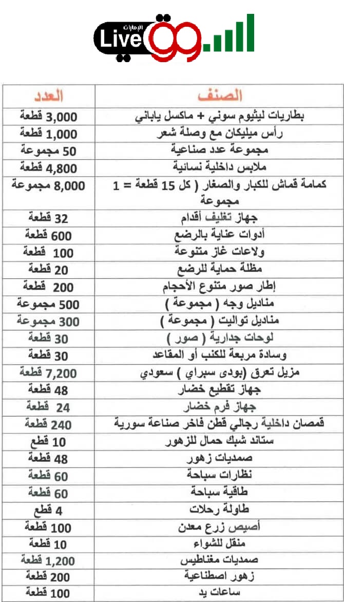 يتضمن العرض أكثر من 100 ألف قطعة متنوعة من المنتجات المختلفة